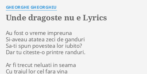Unde Dragoste Nu E Lyrics By Gheorghe Gheorghiu Au Fost O Vreme
